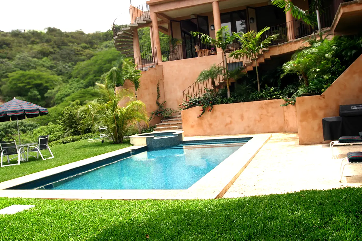 This construction is curious because it was carried out around an existing tree, which had to be preserved.The tree can be seen from different rooms of the house.